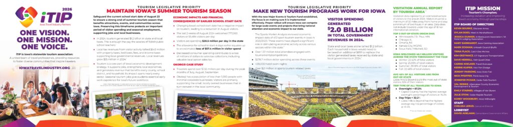 iTIP strategically monitors and advocates for key policy and legislative issues affecting the tourism industry at both the state and federal levels. By staying engaged with national industry organizations such as the American Bus Association, U.S. Travel Association, and Destinations International, iTIP remains at the forefront of understanding policies that impact Iowa’s tourism industry.